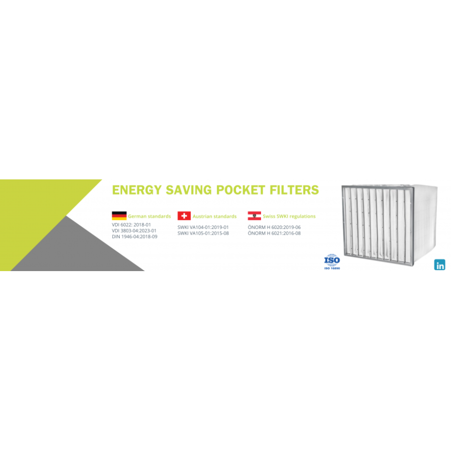The pockets are stitched and the thread lines are sealed with a special material to prevent leakage. This innovative design ensures that the pockets retain their shape. As a result, the entire filtration area is used efficiently, ensuring minimal resistance and a longer filter life;